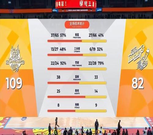 当临沂奥体公园体育馆的终场哨声划破夜空,记分牌上109-82的比分定格了一场酣畅淋漓的胜利。山东高速男篮用一场统治级的表现,为本赛季临沂主场之旅画上圆满句号,同时将连胜纪录刷新至八场,在CBA常规赛的征程中写下浓墨重彩的一笔。这场胜利不仅是数据的碾压,更是团队凝聚力的极致展现,三外援合砍72分的火力狂潮,第四节18-0的窒息式攻击波,让所有现场球迷见证了齐鲁铁军的铁血风采。