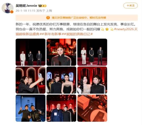 吴艳妮社媒写道:“新的一年,祝愿优秀的你们万事顺意,继续在各自的舞台上发光发亮,事业长红。我也会一直不负热爱、努力奔跑,成就如你们一般的闪耀