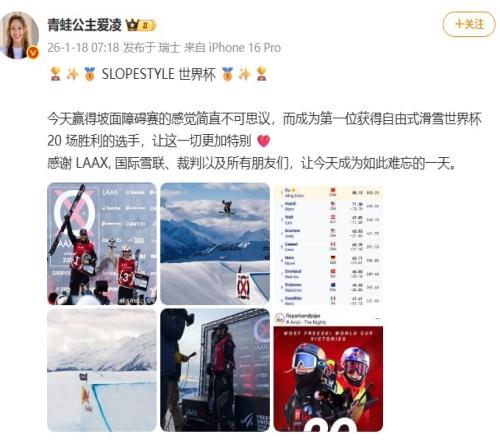 今日,谷爱凌社媒发文谈世界杯夺个人第20冠,原文如下: