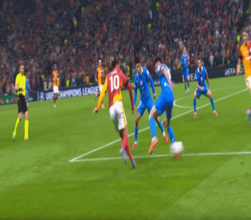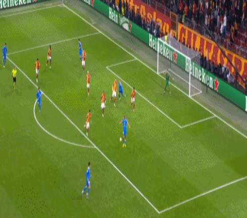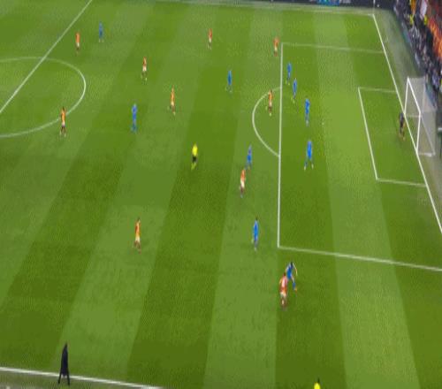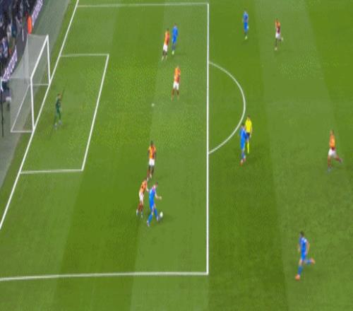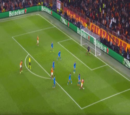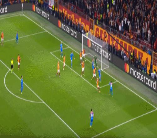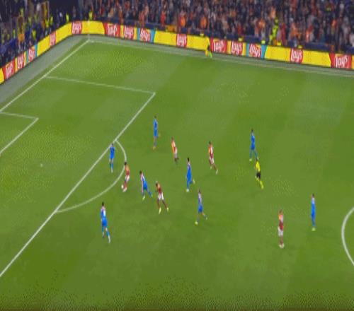 第20分钟,绍洛伊传中,略伦特自摆乌龙,加拉塔萨雷1-1马竞