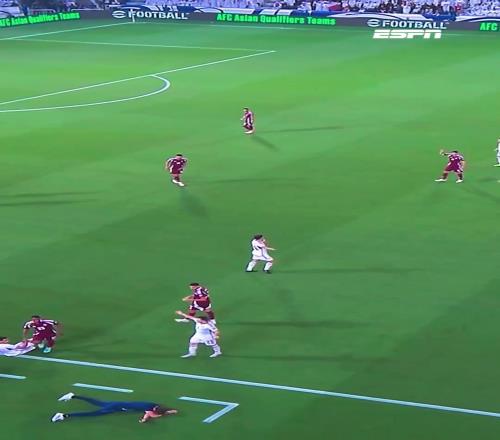 主帅应声倒地!卡塔尔球员边线贴脸大脚,皮球正中洛佩特吉面部