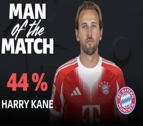 打入反超进球,凯恩当选莱比锡vs拜仁全场最佳球员